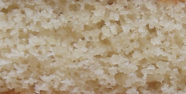 We saw that cakes made with kate flour are yellower and have a coarser grain than those made with cake flour. Woody also noticed a taste he described as “slightly popcorny” in the kate flour cake, which we ascribed to the flour’s heat-treatment in the microwave. Additionally, the cake-flour cake was higher at both the sides and in the centre than the kate-flour cake. Here’s one of Woody’s photos (with my grateful thanks to him for recording his testing in such detail 🙂 ):