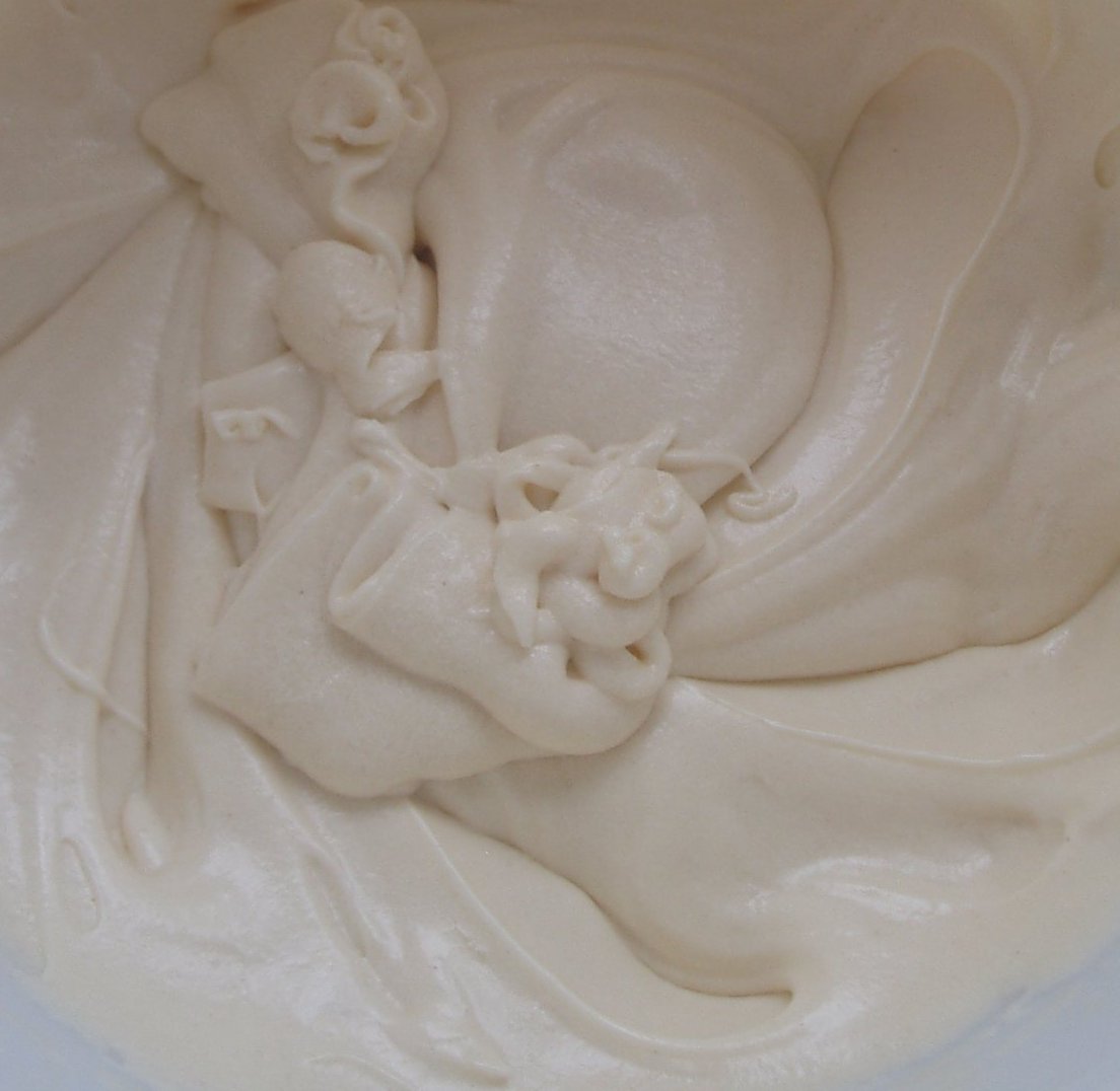 As a result of our cross-Atlantic flour experiments, I also had an opportunity to view and directly compare the batters produced by the two flours. Just as the finished crumb of the cake was coarser when using kate flour, so the batter appeared to be grainier and less gloopy than that of cake flour.