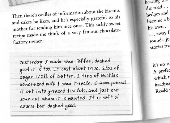 I wasn’t feeling particularly confident about my ability to make toffee either, but M has been reading a book about Roald Dahl and found a recipe for toffee there. On page 82, to be precise. Roald Dahl said this toffee was “dashed good”, so naturally M wanted to try it. I did warn her about sugar crystallization, separation and burning but she didn’t really ‘get’ my sugar phobia.